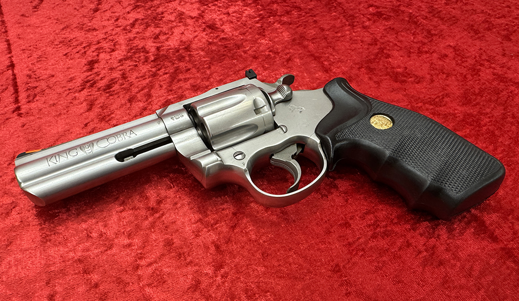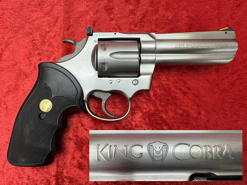 Der Colt King Cobra ist eine hochwertiger .357 Magnum Revolver aus den USA und gehört zu den robusteren, diensttauglichen Modellen von Colt – mit dem Fokus auf Stabilität und Langlebigkeit. Der Colt hat einen 6-Schuß geflutete Trommel sowie eine verstellbare Visierung. Ihren Beschuss erhielt die King Cobra 1988 in Mellrichstadt.